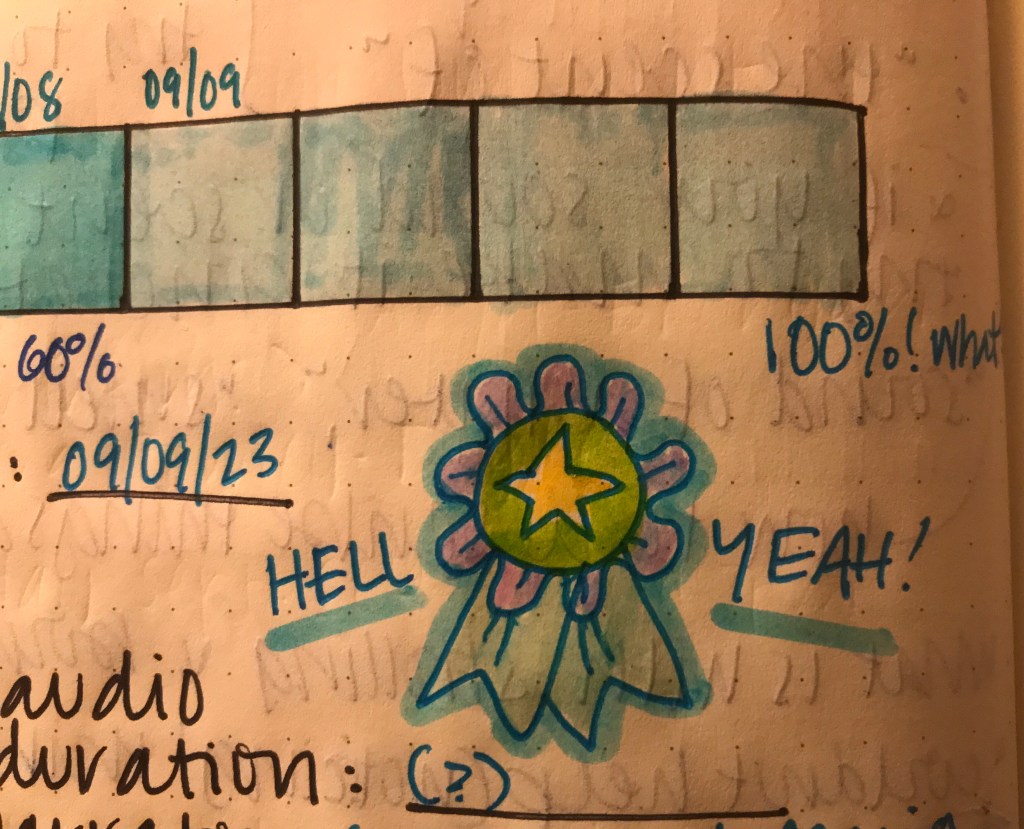 P.S.: I drew myself a little accomplishment ribbon for reading a book in four days. Treat yourself to little silly rewards! Be your own validation, it’s fun!